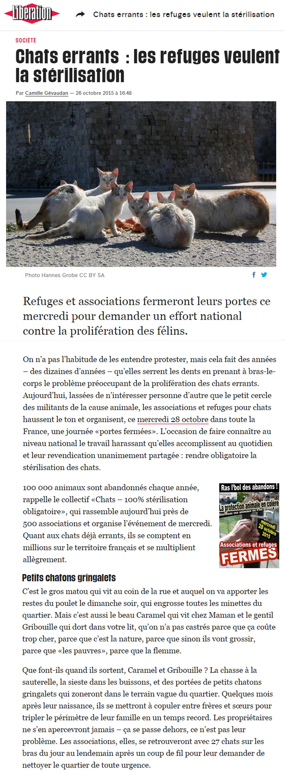 Excellente initiative !!! Il est temps que les gens deviennent responsables!!! L’excuse du genre « c’est la nature » est une débilité de toute manière vu que la domestication, en elle même, n’a rien de « naturelle » vu que c’est une invention humaine. Bravo à tous les refuges et associations qui se mobilisent !!!