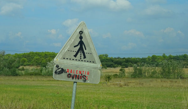 Sur le chemin de pierre complètement défoncé qui y menait, on a vite compris en croisant un panneau qu’on venait de traverser une faille spatio-temporelle et qu’on allait se retrouver dans un univers parallèle, voire même peut-être à Bugarach. Et voilà qui expliquait pourquoi le GPS d’Anti tenait à tout prix à nous faire passer par des routes qui n’existaient pas. Coïncidence ? Je ne le crois pas (ici, musique angoissante de Krzysztof Pendericki, c’est un minimum).