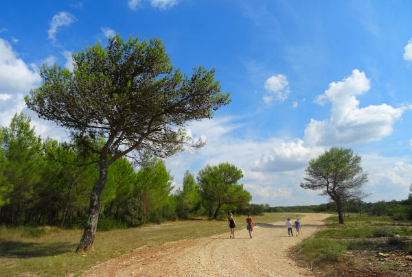 Le Clos Gaillard est un espace de près de 300 hectares de garrigue aménagée, à une dizaine de minutes de chez nous, mais curieusement, nous n’en avions jamais entendu parler jusqu’à hier. En fait, Anti avait envie qu’on sorte se promener avec les enfants et elle est tombée dessus en faisant une petite recherche sur internet. Comme Ilona habite tout près de ce site (qu’elle ne connaissait pas non plus), nous l’avons appelée pour qu’elle nous y rejoigne. Il faisait un temps parfait.