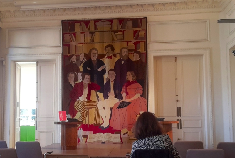 Cette cérémonie avait lieu à la Société des Gens de Lettres, dont le siège se situe dans le superbe Hôtel de Massa. Pour la petite histoire, la Société des gens de lettres a été fondée par Honoré de Balzac, George Sand, Victor Hugo et Alexandre Dumas père qui en deviendra le premier président et mènera campagne en faveur de la propriété littéraire et des droits des auteurs.