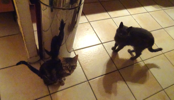 Timi continue à se porter du mieux possible. Toujours un peu faible, mais de plus en plus tonique. Du coup, entre deux longues séances de sieste sur le canapé, il poursuit ses explorations dans la maison. Hier, il a fait un tour en bas, mais comme j’avais la chambre de Gwlad à repeindre, c’était un peu trop agité pour lui et il est remonté (avec Ché et Maley qui partageaient entièrement son point de vue). Suivez le guide !