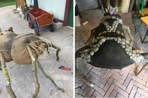 Elle a été conçue et réalisée par Ulfin. Celui lui a pris environ trente heures de travail. Tout est fait en matériaux de récupération, qui ont été glanés de ci de là.