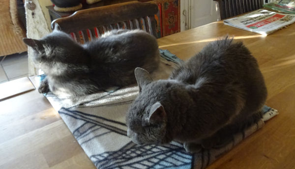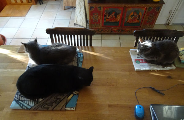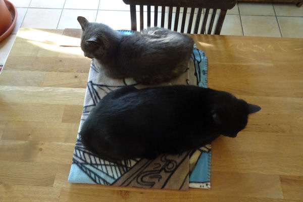 Finalement la table n’est pas faite que pour le diner , mais elle sert aussi de lieu de repos , bravo les chatounets !