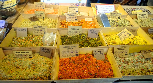 Nous avons plus particulièrement traîné autour des stands de nourriture (pas spirituelle, pour le coup) – boulangers, herbes et épices, thés en tous genres – et aussi, chez deux exposants bien précis : le monsieur qui sculpte des arbres pour en faire des objets superbes pour se détendre et se poser…