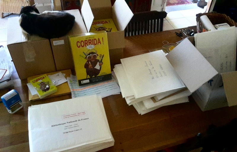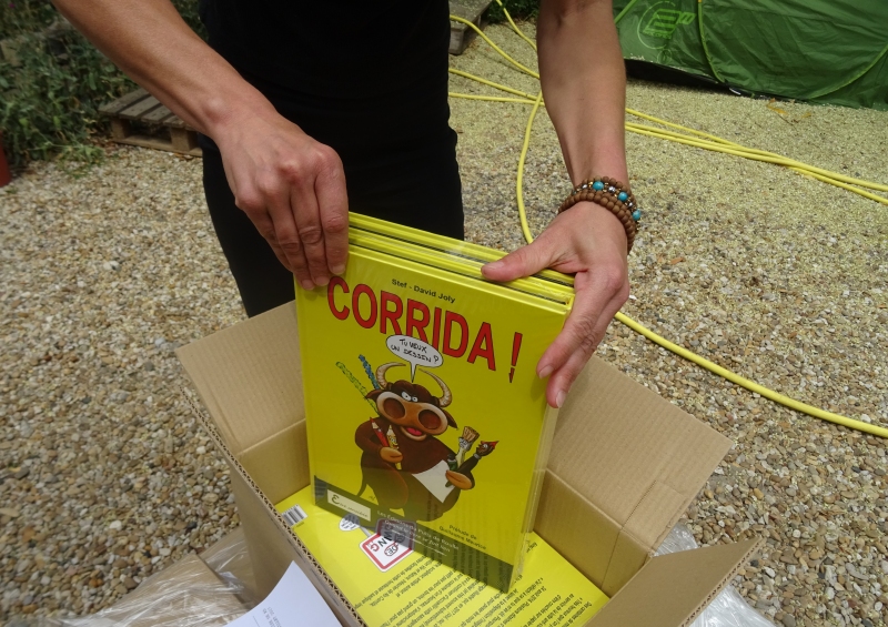 Il va encore falloir patienter un poil : Stef est en plein boulot de dédicace 🙂 Je suis tellement contente de le voir enfin ce bébé ! Quelle grossesse pénible ! Au final, en terme de boulot, ce livre m’aura pris une demi année facile, coûté le double financièrement, son poids étant plus élevé que celui de la première version, il faut 1,46 € de frais de port en plus, il m’aura coûté quelques cheveux blancs aussi et une belle crise d’arthrose, mais là, le résultat est à la hauteur de mes espérances. Bon maintenant, il faut les vendre !
