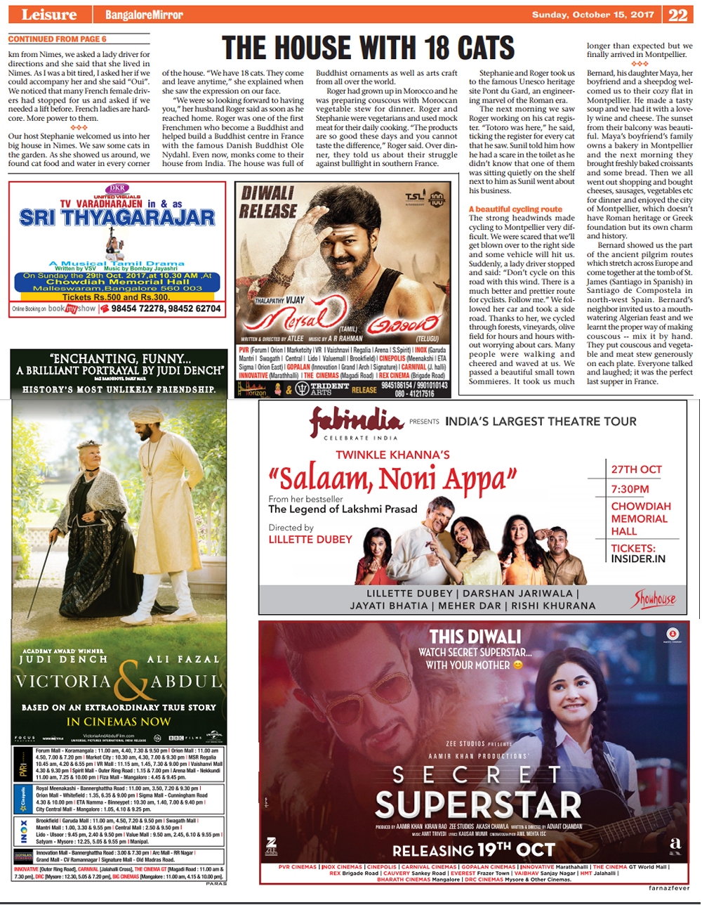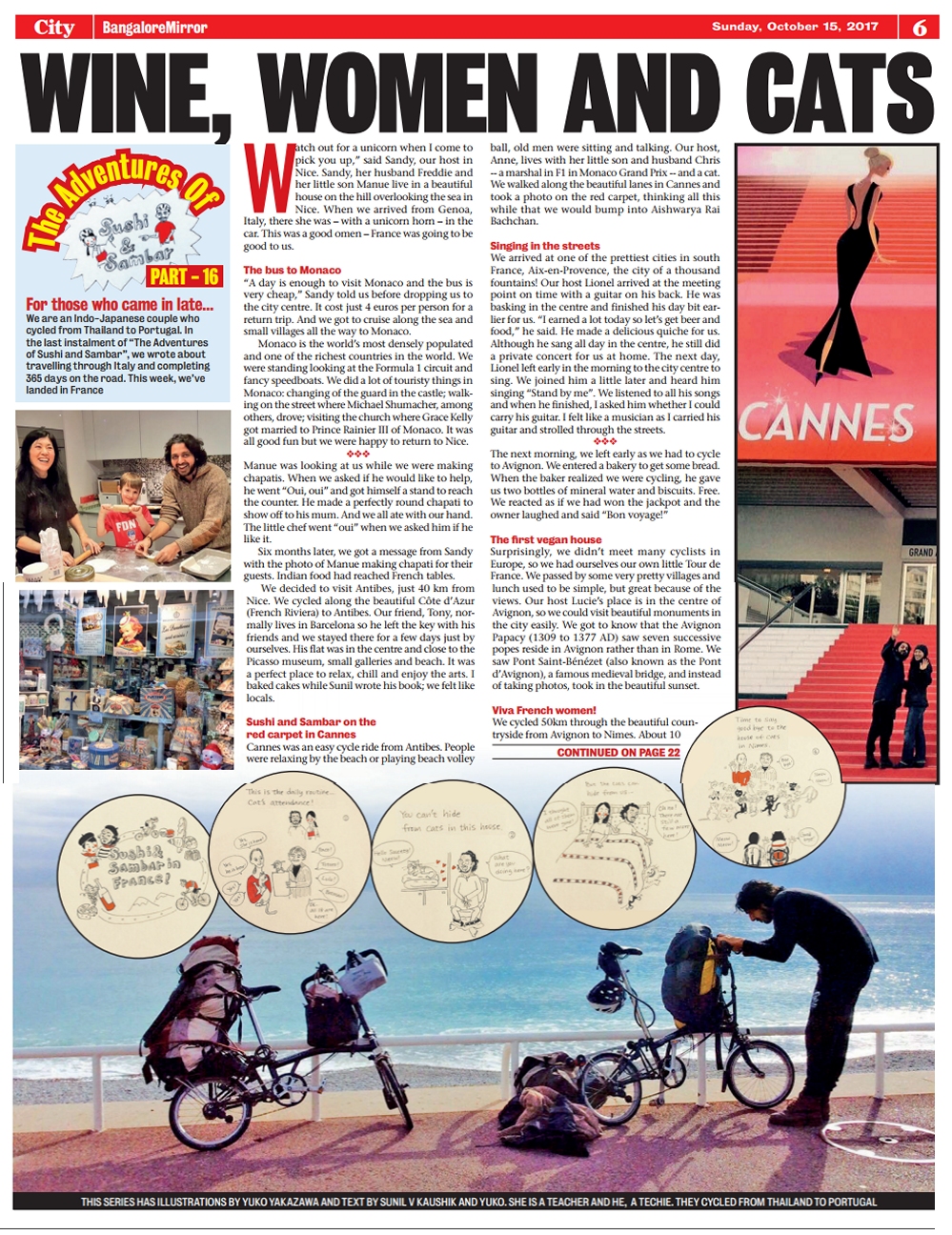 Merci à nos amis Yuka et Sunil pour ce bel article de 2 pages dans le BenGalore Mirror (India’s Time), teeeeeeeeeeeeeeeellement vrai ! Les illustrations sont de Yuka.