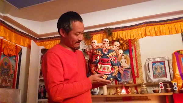 J’adore ce genre de situation. On se promène quelque part, on passe une frontière invisible et hop, on se retrouve dans un autre monde. Comme lorsqu’on arrive dans un quartier chinois en pleine ville occidentale juste en traversant une rue. Hier, on était à Montpellier pour un examen médical et cela a été l’occasion pour moi de découvrir le centre bön que Lama Samten occupe à quelques pas (littéralement) de la gare. Grande avenue, façades d’immeubles alignées et puis, une porte cochère banale, un vieil escalier en pierre, l’entrée d’un appartement comme tous les autres. On passe le palier et là, on se téléporte instantanément au Tibet.