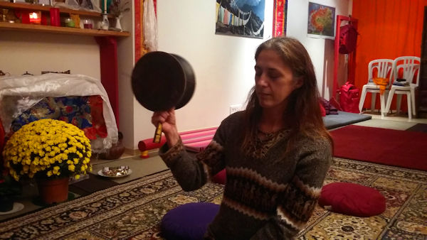 J’avais jeûné depuis le matin à cause de mon examen, Anti m’a acheté une pizza que j’ai dévoré à 17h. Lama Samten nous a servi du thé et des gateaux pendant que nous avons regardé les dizaines de photos incroyables prises pendant sa jeunesse au monastère de Menri ou dans sa famille au Tibet. Il nous a donné un petit cours pour utiliser un damaru et Anti a été bien meilleure que moi pour le faire.