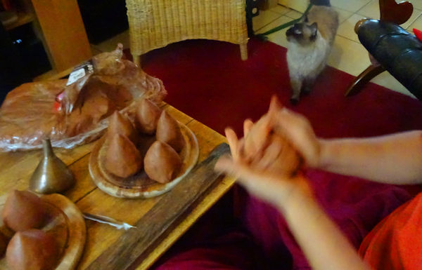 Hier, Lama Samten, voulant à tout prix m’aider à sortir des problèmes de santé que je subis depuis deux mois, a décidé de réaliser un rituel de guérison à la maison. Dans la matinée, il est parti avec Anti faire quelques courses, dont une grosse poche d’argile à Cultura.