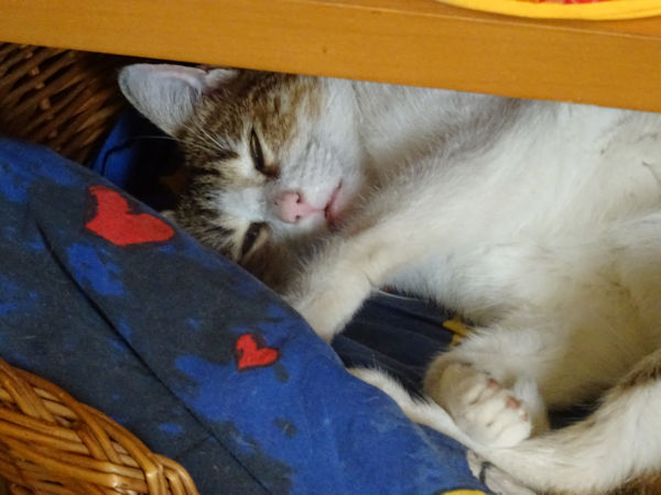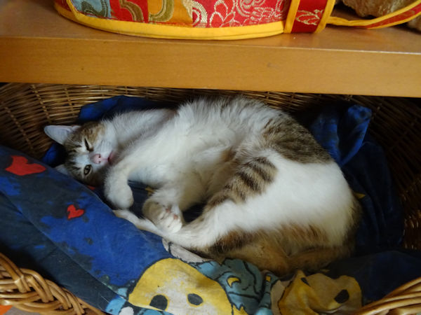 Quelques photos montrant le haut niveau de détente qui règne à la maison ces jours-ci. Attention, une Chouquette s’est glissée au milieu des photos de Joli Coeur, c’est dire si elle s’est bien intégrée au mode de vie de chez nous.