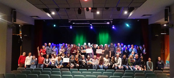 Après la séance des questions-réponses, très animée, André a annoncé que toutes les personnes présentes seront invitées à la première de l’écocirque et, pour prouver qu’elles étaient bien là, il a invité tout le monde à monter sur scène pour des photos de groupe que j’ai prises depuis la salle et qui vont diffuser à partir d’aujourd’hui sur les réseaux sociaux.