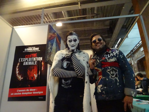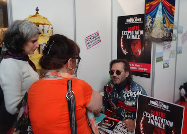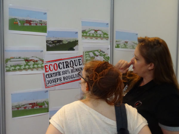 Notre stand a connu un beau succès, beaucoup de personnes souhaitant en savoir plus sur l’admirable évolution de Sandrine et André-Joseph vers un nouveau cirque traditionnel sans animaux, qui sera d’une conception révolutionnaire puisque imprégné dans tous ses détails d’écologie appliquée. Et, bien sûr, plusieurs journalistes sont passés pour interviewer André-Joseph.