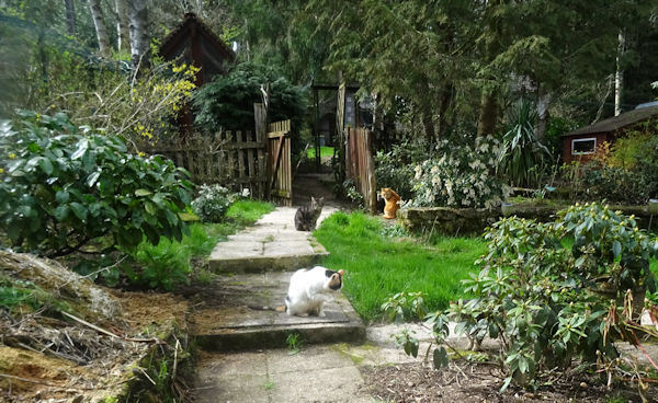 Suite de la visite guidée du refuge où se trouve désormais Patachon. Hier, je vous ai montré l’intérieur de la maison, voici aujourd’hui l’extérieur où il n’y a pas que des chats. Les cabanons et petits chalets où s’installent librement les animaux ont tous été construits par le maître des lieux, fin bricoleur.