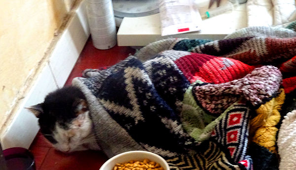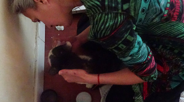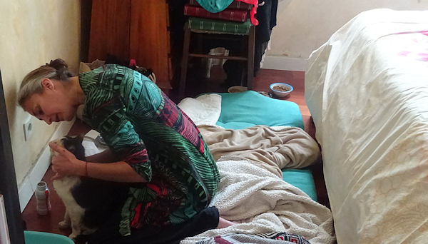 Hier, Tanguy a été nourri patiemment à la seringue par Anti, avec un produit nutritif liquide (Fortol), en plusieurs fois dans la journée. C’est un mode d’administration qu’il supporte bien et qu’Anti maîtrise à la perfection. Il est très faible mais tient le coup. On est avec lui du mieux qu’on peut.