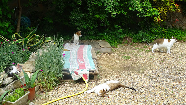 Les minous de même pelage ensemble : Merva, Maley, Joli Coeur et Ché