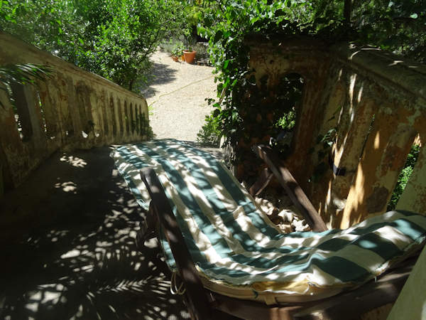 Depuis quelques jours, en haut de nos marches, Anti a installé une chaise longue. Elle fait face au jardin, sous la tonnelle de feuillage et semble s’étirer comme un prolongement de l’escalier lui-même. Une seule envie en la voyant : s’y allonger pour regarder pousser la végétation ou se laisser bercer par le bourdonnement des abeilles, revenues en nombre.