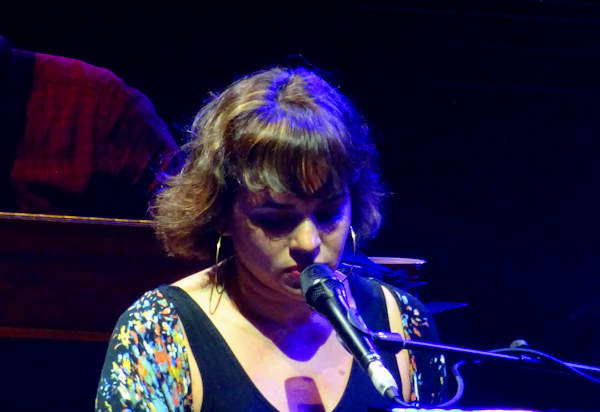 Nora Jones et ses trois musiciens ont pris la suite. Alors que les éclairs se multipliaient, ils ont enchanté l’audience avec des morceaux magnifiquement conçus et interprétés, Nora les accompagnant soit au piano, soit à la guitare.