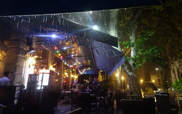 Hélas, les grosses gouttes se sont rapidement transformées en déluge. Les musiciens ont dû quitter précipitamment la scène et nous, les gradins.