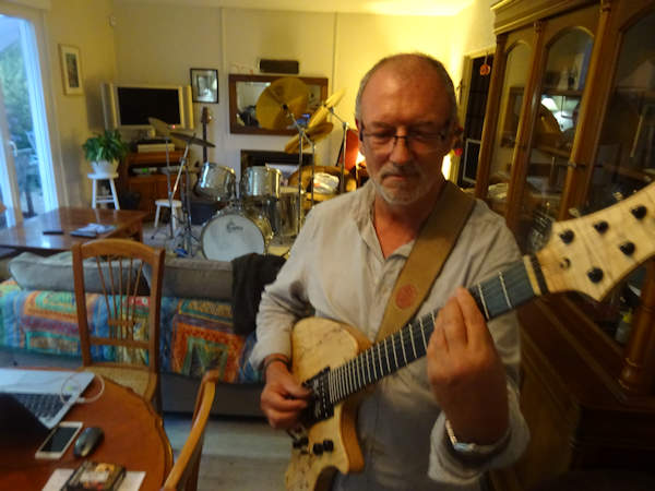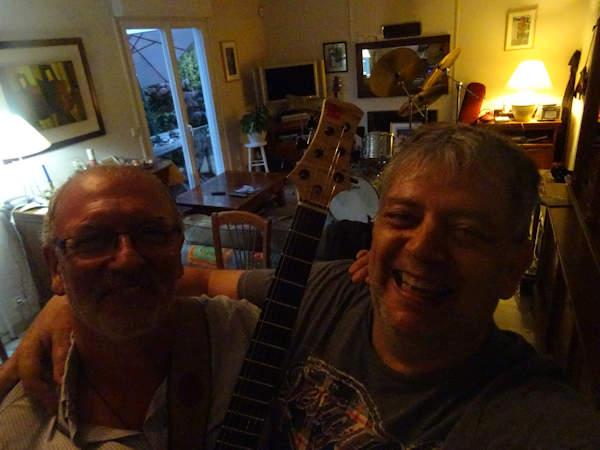 Phiphi a branché derechef sa superbe guitare faite sur mesure par un luthier de ses connaissances, celle qu’il avait déjà prise avec lui quand il est venu à Nîmes. Il en a plusieurs autres chez lui, dont une guitare acoustique au son exceptionnel et à la conception très originale, que je vous montrerai plus tard.
