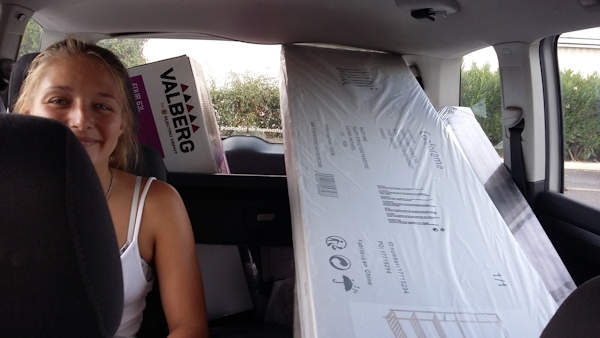Nous avons fait hier un tour à Montpellier pour y retrouver Gwlad. Elle déprimait sérieusement de n’avoir aucun moyen de transport pour aller acheter une table, des chaises, un four et deux appliques murales pour sa chambre. Pour la table et les chaises, Anti a trouvé exactement ce qu’il fallait sur le Bon Coin pendant le trajet. Gwlad a confirmé à notre arrivée que cela lui plaisait, on est partis chez le monsieur qui vendait tout ça (fort sympathique et musicien de surcroît), on a chargé dans le Touran, on a tout rapporté à l’appartement et installé l’ensemble. Superbe résultat.