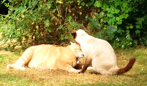 Chez Phiphi, il y a deux superbes chats. Pléonasme, me direz-vous, tous les chats sont superbes. Mais ceux-là, en plus, ils sont bretons. Ca se reconnait à leur accent. Ecoutez attentivement cette photo si vous avez l’option « son de la photo », sinon ça march’pô, mais bon vous avez au moins l’image, normalement :