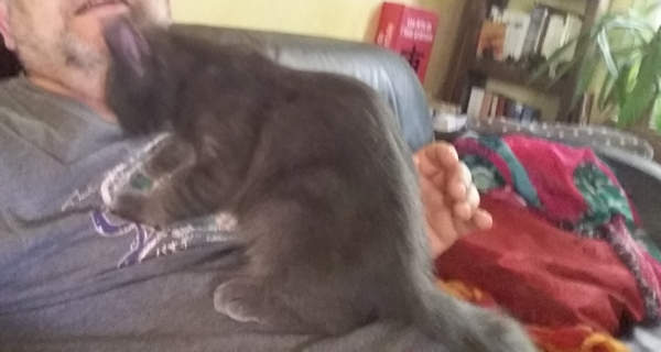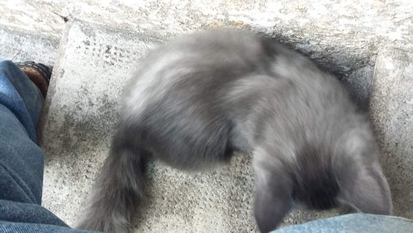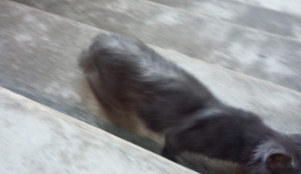 Hier, Tsewa arborait une superbe raie médiane tout le long de son dos. Comment avait-il fait pour se coiffer comme ça ? Mystère, il n’a pas voulu ne le dire. Alors, bien sûr, j’ai voulu la prendre en photo en profitant d’un moment où il resterait immobile un peu plus de trois secondes, ce qui est rare ces temps-ci. Hé bien, de fait, je n’y suis pas arrivé. Le seul moment où il est resté sans bouger assez longtemps, c’était là :
