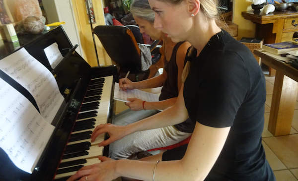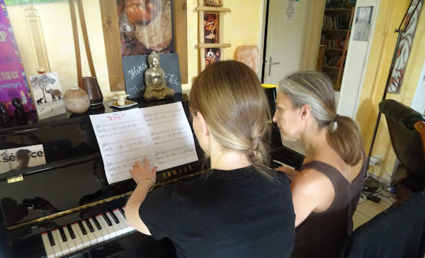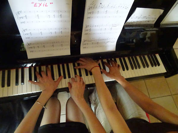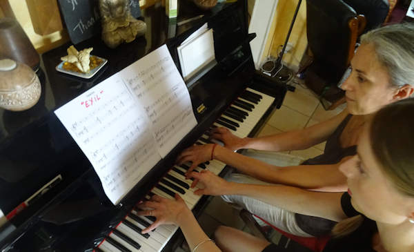 Ilona est passée hier à la maison pour découvrir la partie de piano d’Exil, le morceau que nous avons mis sur pied avec Fifi autour de la chanson de Lama. Elle était très excitée par cette expérience, elle qui est une pianiste de haut niveau, dotée d’une oreille absolue et qui déchiffre à vue les partitions les plus complexes.