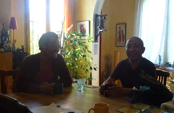 Hier, Lama est passé nous voir avec un ami, guéshé comme lui. Ils étaient accompagnés de Tenzig, une ravissante gamine, également tibétaine, âgée d’une dizaine d’années et scolarisée en France. Avant d’arriver chez nous, l’ami de Lama est parti du même monastère que lui, Menri en Inde, puis est allé enseigner au Mexique, une expérience difficile, avant de migrer à nouveau, cette fois à Paris.