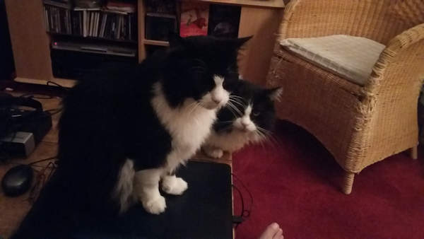 Parfois, nos minous ne veulent pas qu’on utilise nos PC. C’est très simple : ils se mettent dessus. Toutes les personnes qui ont des chats connaissent ça. Hier, ils s’y sont mis à deux pour que je laisse le mien fermé : Mimi et Will, les quasi jumeaux, toujours ensemble quand il s’agit de se faire câliner, mais aussi quand il faut sécuriser l’accès à mon ordinateur.