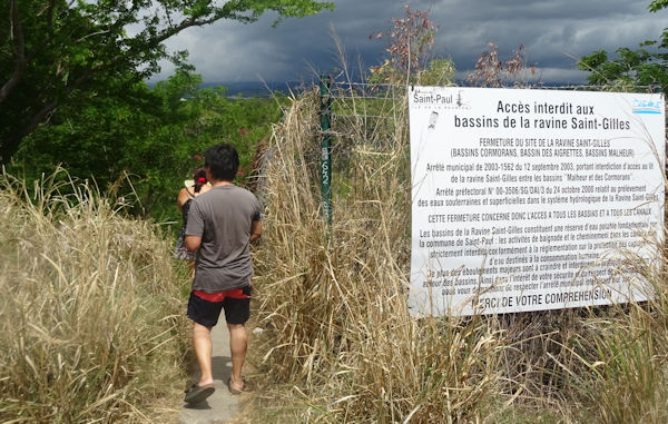 Sophie et Nico nous ont un jour emmenés visiter les trois bassins de la ravine de Saint-Gilles. En fait, nous n’en avons vu qu’un les deux autres étant inaccessibles à la suite d’éboulements. D’ailleurs l’ensemble du site était théoriquement d’accès interdit, mais nous n’étions pas seuls pour autant à faire cette belle promenade, même si parfois il a fallu marcher directement dans des cours d’eau ou sur des pentes un peu acrobatiques. Place aux images !