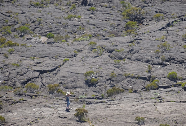 Une promenade de plusieurs heures permet d’aller du bord de la caldera (le cratère, huit kilomètres de diamètre, à comparer à celui du Vésuve qui fait en gros 800 mètres) au sommet du promontoire central, le piton. On descend dans la caldera par quelques centaines de marches.
