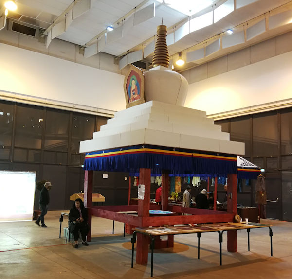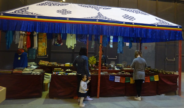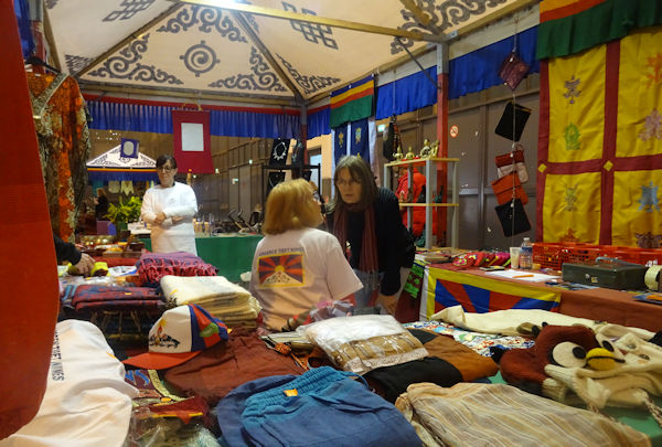 Nous avons pu parler avec Serge, le président d’Urgence Tibet. Nous l’avons félicité pour l’organisation de ce « village tibétain », avec tout ce que cela suppose de logistique et d’effort. Tous les stands, y compris le stupa qui abritait le mandala, ont été fabriqués par Dorjee, du super boulot. D’ailleurs, il participe régulièrement à des événements internationaux.