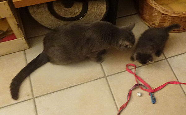 C’est toujours émouvant de les voir grandir ces minous. Je ne peux m’empêcher de les revoir simultanément à leur arrivée (maigres, malades, tristes, craintifs) et maintenant (pas maigres, en pleine forme, heureux, confiants). Un bonheur incommensurable.
