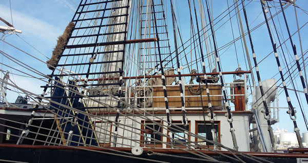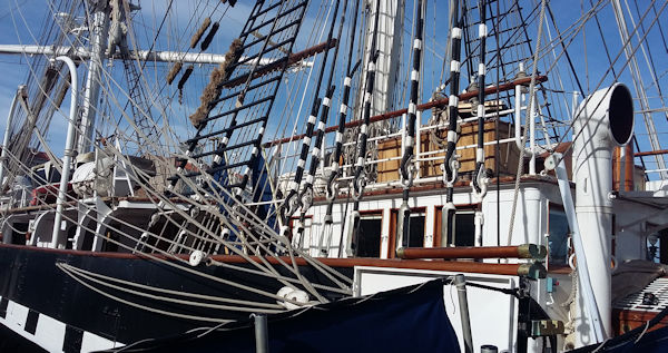 Dimanche dernier, Michel nous a emmenés voir le Belem, arrimé à l’un des quais du port de Sète. Il s’agit de l’un des plus anciens trois-mâts en Europe en état de navigation et le second plus grand voilier restant en France. Il a été construit en 1898. Son histoire peut être lue sur Wikipedia. En voici ce matin quelques photos. Nous n’avons pas pu monter à bord, les visites venaient de se terminer quand nous sommes arrivés.
