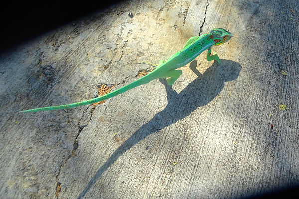 Tout le monde s’est arrêté sans problème et a tranquillement patienté pendant que j’incitai de la main l’endormi à traverser pour aller se réfugier sur le trottoir d’en face. Une fois qu’il a été en sécurité, nous avons fait signe aux véhicules qu’ils pouvaient reprendre leur route. Plusieurs Réunionnais nous ont salué joyeusement au passage, avec des signes de sympathie et des appels de phares.