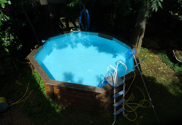 Fort heureusement, la piscine est à nouveau prête à être utilisée. J’ai terminé d’aspirer les derniers petits débris végétaux qui traînaient au fond hier après-midi, en me mettant dans l’eau – tant qu’à faire, autant en profiter pour inaugurer sa nouvelle saison.