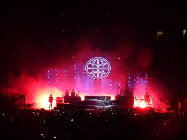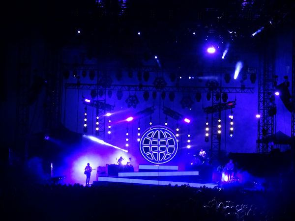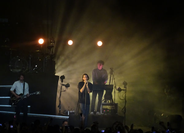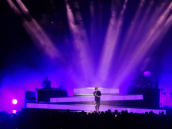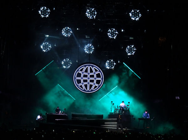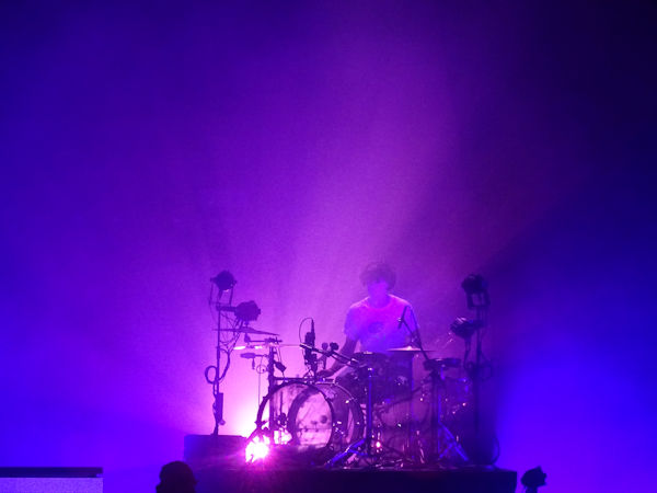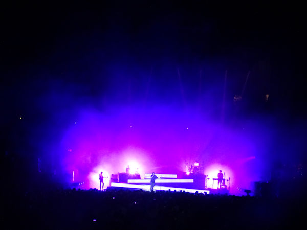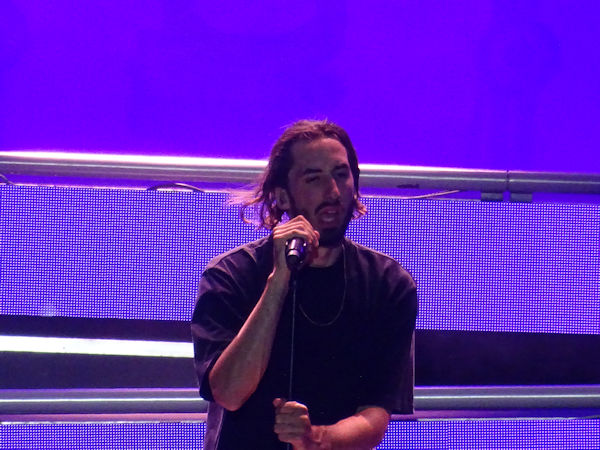 Nous l’avouons, nous n’avions jamais entendu parler de Lomepal avant ce soir-là, mais le show qu’il nous a offert était renversant. Déjà, il s’agissait d’un vrai groupe sur scène, avec une batterie, une basse, des claviers et, d’accord, quelques machines, très bien utilisées d’ailleurs. Mais ce qui nous a surtout époustouflé, c’est le jeu de lumières tout au long de la prestation des musiciens. L’ingé aux commandes d’un dispositif particulièrement riche a réalisé un boulot impressionnant de créativité visuelle. Un régal ! En voici un échantillon, forcément moins bien que lorsqu’on le voit de façon dynamique et que tout bouge tout le temps, mais tout de même.