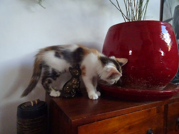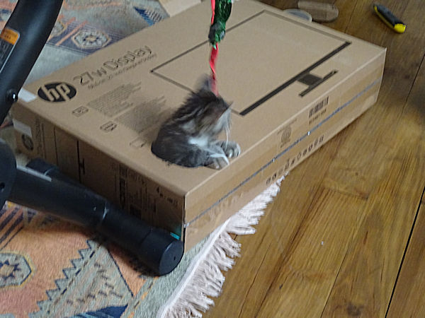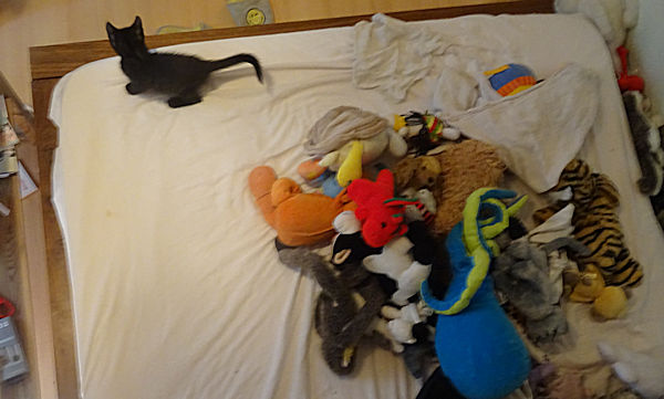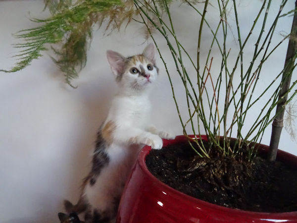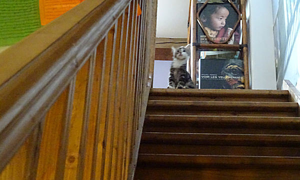 Les chats, ça aime explorer le territoire auquel ils ont accès. Et, depuis quelques jours, les chatons ont accès en plus de notre chambre à celle d’Enzo qui, elle-même, permet d’aller dans les combles. Ce qui leur fait un nouvel univers immense (par rapport à leur taille).