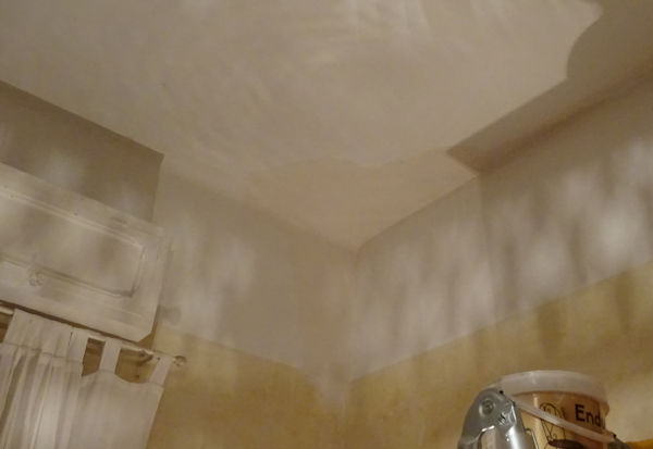 Il ne reste « plus qu’à » poncer, lisser si nécessaire avec un peu plus d’enduit et peindre. D’ailleurs, elle commence à envisager d’en profiter pour repeindre tout le plafond. On ne l’arrête pas quand elle est lancée, mais ça vaut le coup. Cette maison est de plus en plus neuve.