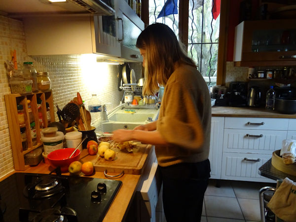 De retour dans la maison, j’ai pris une bonne douche. Gwlad s’est lancée dans une grande opération pâtisserie (tarte aux pommes et tarte aux fraises) et a également préparé le repas du soir, pendant qu’Anti, après s’être également lavée, se consacrait à son travail d’éditrice dans son bureau installé dans les combles enfin totalement emménagées.