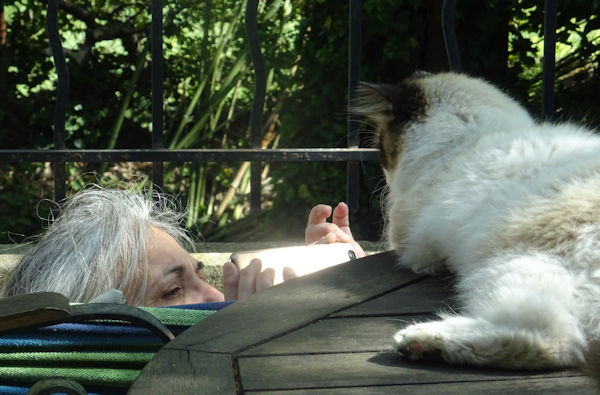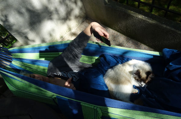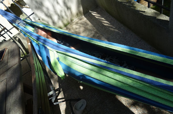Eh oui 🙂 Et avec une super organisation en plus ! Première tranche de glande sur hamac avec couette et Bianco, puis suivant le soleil, seconde tranche avec installation d’une chaise longue sous les oliviers, puis, traquant les derniers rayons de soleil, suite et fin de la glande sur le perron. Pfiou ! 5 heures de glandouille d’une traite ! Je suis en net progrès 🙂