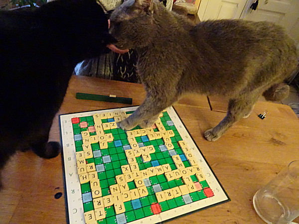 Bon, il ne nous restait plus qu’une seule lettre à poser, l’un et l’autre, donc il n’y avait plus de doute sur qui allait gagner la partie – Anti, loin devant de plusieurs dizaines de points, alors qu’il me restait un L, facile à placer mais qui ne pèse qu’un seul point.