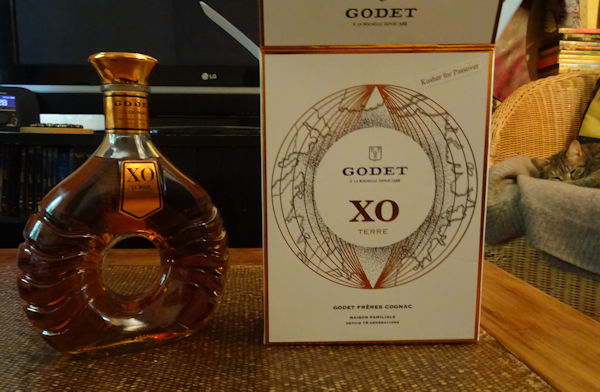 Gwladys a pris ma commande pour le gâteau, une superbe tarte au citron, qu’elle a réalisée avec son brio habituel. Côté cadeaux, j’ai été gâté : Stéphanie m’a offert une incroyable bouteille de Cognac XO de 30 ans d’âge, produite par Godet, maison multiséculaire, et qui a été classée médaille d’or mondiale l’an dernier. J’en ai parlé avec Le Chef au téléphone, il connait bien et en a gardé un souvenir ému.