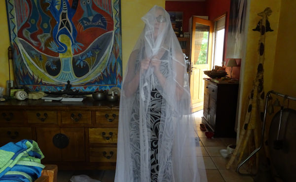 Elle n’a pas pu s’empêcher de se draper de la moustiquaire telle un voile de mariée, c’était de circonstance 🙂