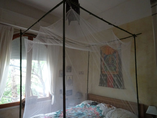 Nous avons célébré hier nos 11 ans de mariage et 14 ans depuis notre première rencontre à distance sur le forum littéraire de France Télévisions (ce qui fait donc notre quinzième 23 mai). Dans la journée, Anti a assemblé avec quelques bambous coupés dans le jardin un baldaquin au-dessus de notre lit pour installer une moustiquaire de grand volume, bien plus pratique que celle que nous avions ces dernières semaines.