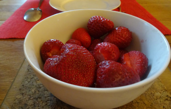 En dessert, quelques fraises, c’est de saison, en toute simplicité.