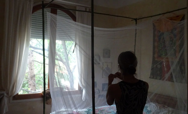 Elle n’a pas pu s’empêcher de se draper de la moustiquaire telle un voile de mariée, c’était de circonstance 🙂
