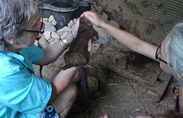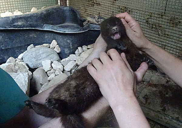Une de nos rencontres les plus improbables lorsque nous sommes passés à l’Hôpital de la faune sauvage a été un loutron – le petit de la loutre. Ou alors, peut-être était-ce une loutronne, Marie-Pierre ne savait pas. Autant dire qu’il est très rare de recueillir un animal comme ça.