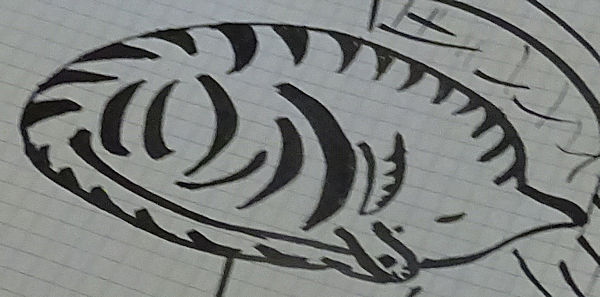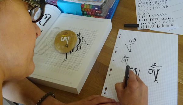Ensuite, un peu de tibétain, c’est toujours aussi beau (ici, la lettre Om, vous l’aviez reconnue) :