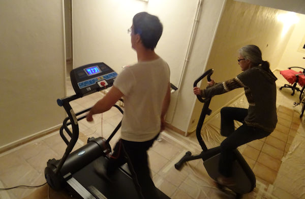 Pour promener le kéké un tapis de marche, non? Au final, non. Il nous faut au minimum 4 arbres, 3 réverbères pour lever la patte. Lol!!!